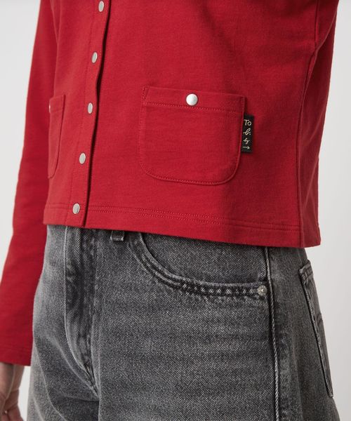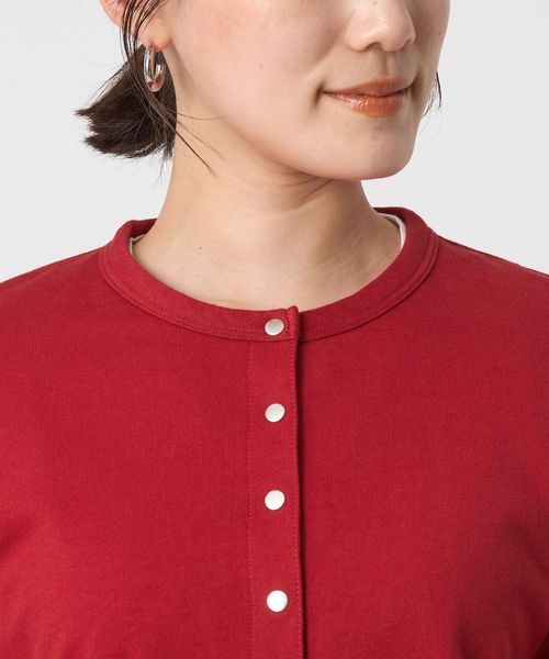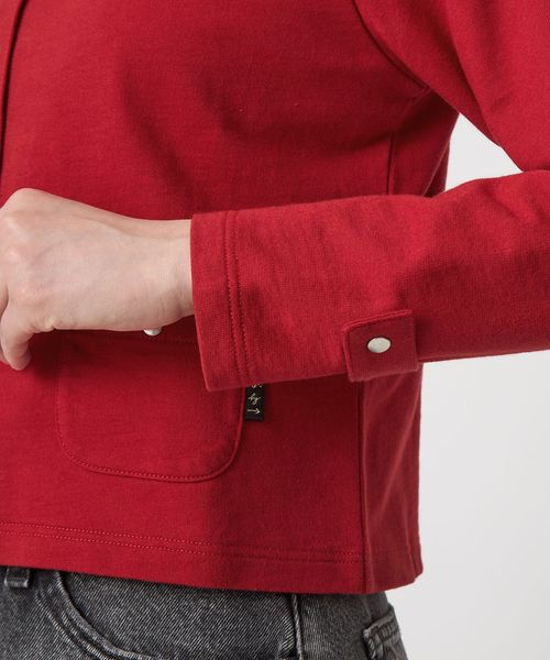 ドットボタンを留めて、一枚で着ても着映えするアイテムです。