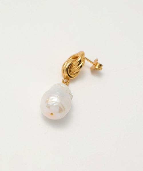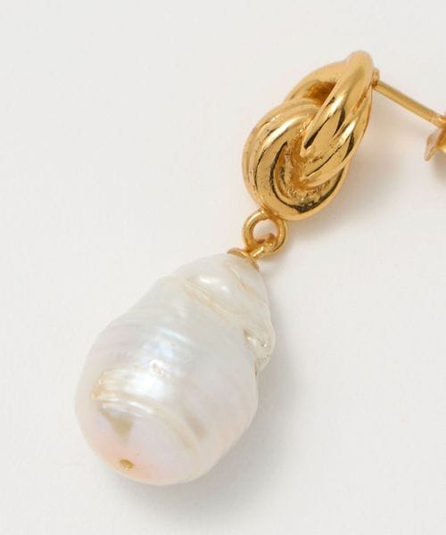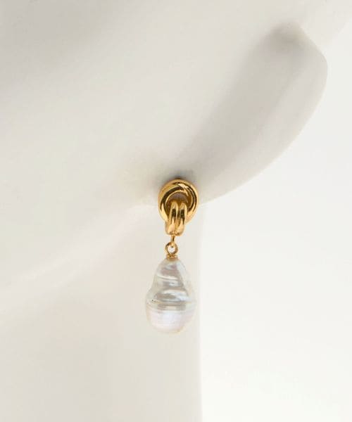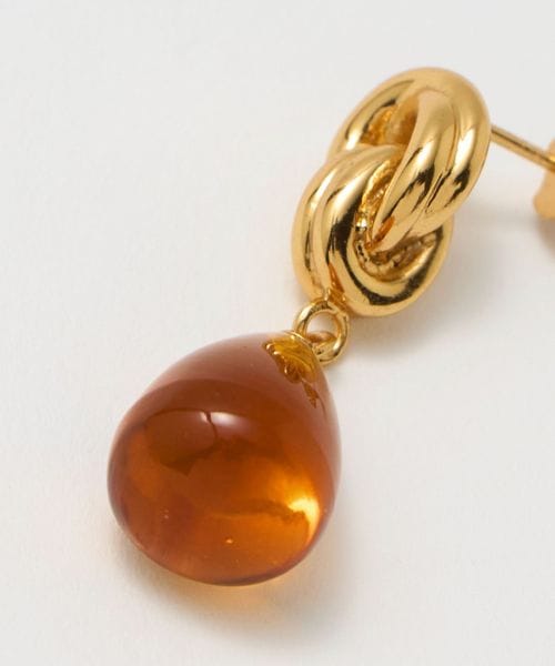 チャンキーノットトップと、ドロップチャームが特徴のピアス。