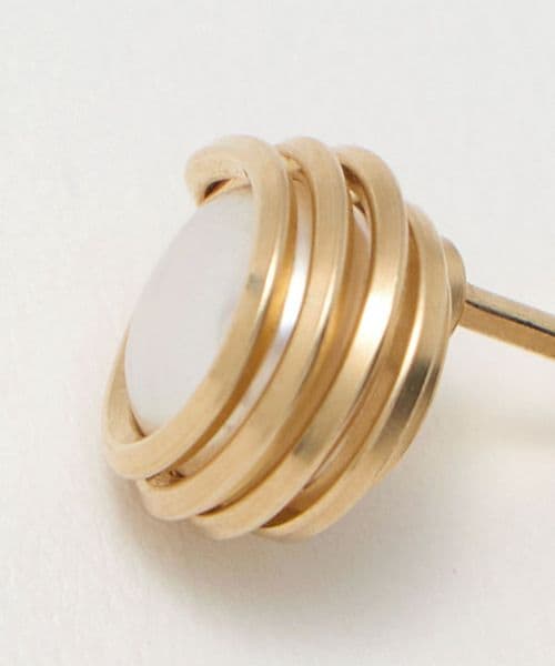 淡水パールの一粒を、ゴールドカラーの縁でデザインしたピアス。