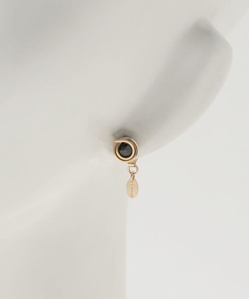 ブラックカラーの一粒石を、ゴールドカラーの縁でデザインしたピアス。