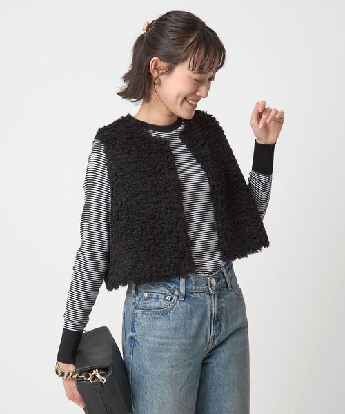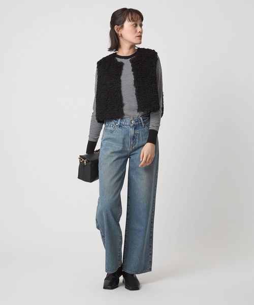 シンプルに、タイトスカートやワイドデニムに合わせたキレイメスタイリングが◎