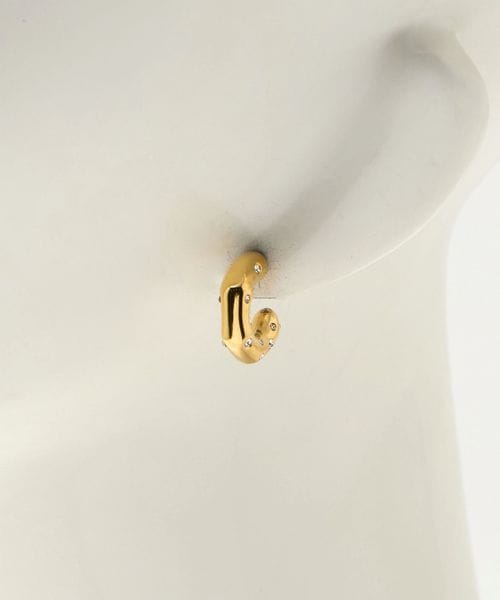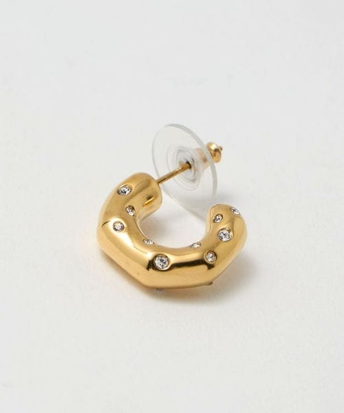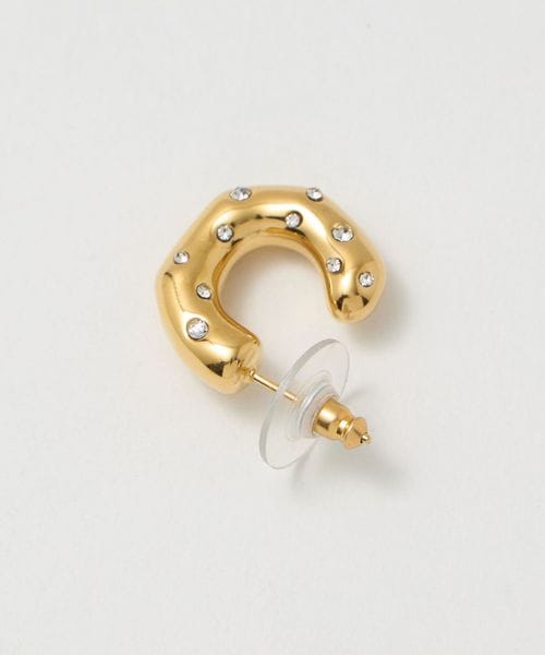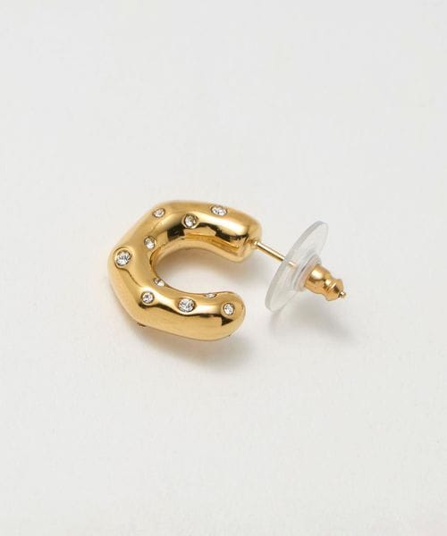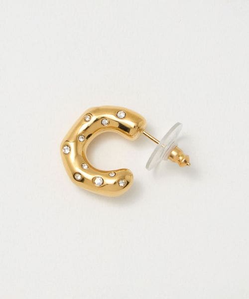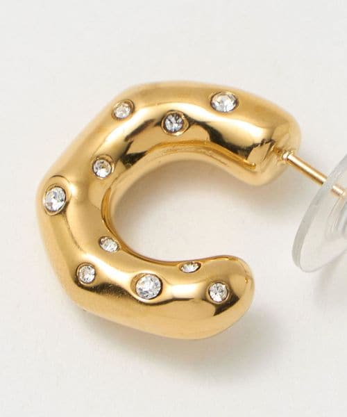クリアカラーのストーンが散りばめられたフープタイプのピアス。