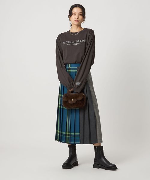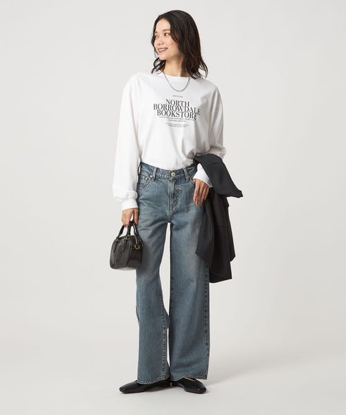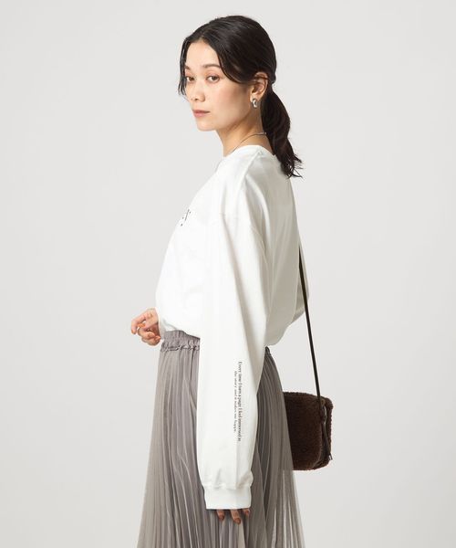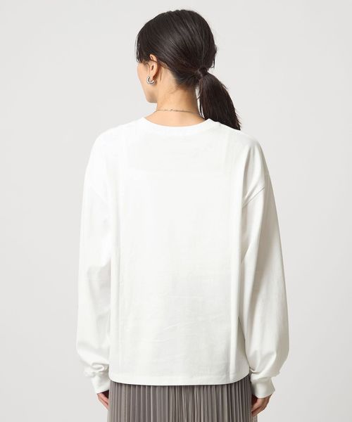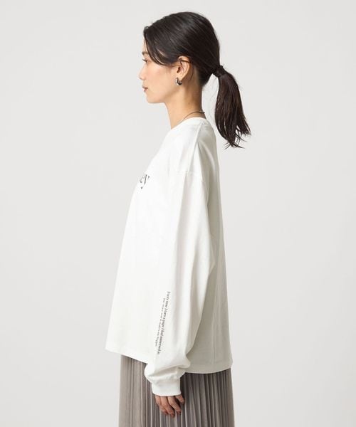 マニッシュな雰囲気が魅力のロゴプリントロングTシャツ。