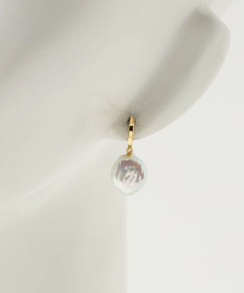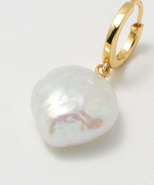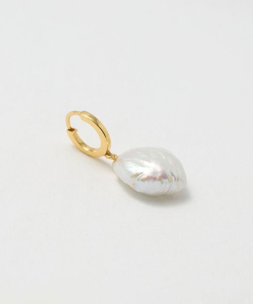 ゴールドカラーのフープにチャームのコンビネーションが印象的なピアス。