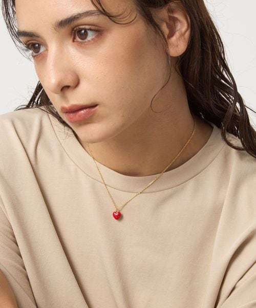 華奢なチェーンにコロンとした可愛らしいハートチャームがポイントになったネックレス。