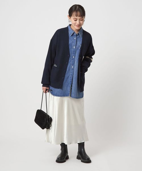 シャツ×カーディガンの組み合わせはほどよいきちんと感をプラスします。