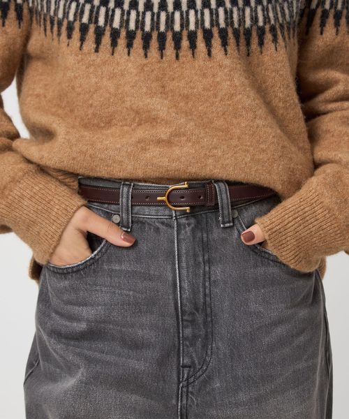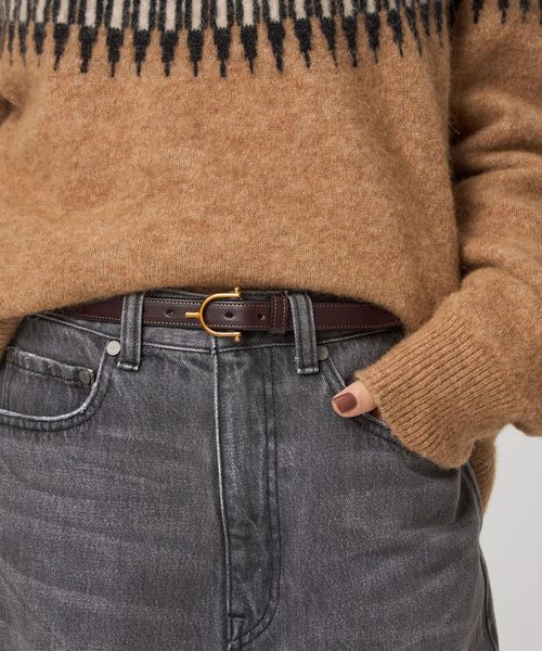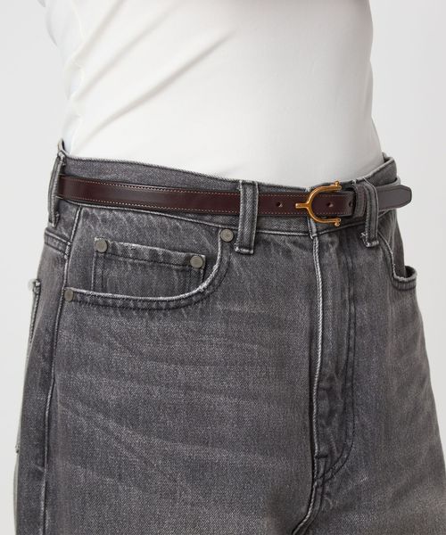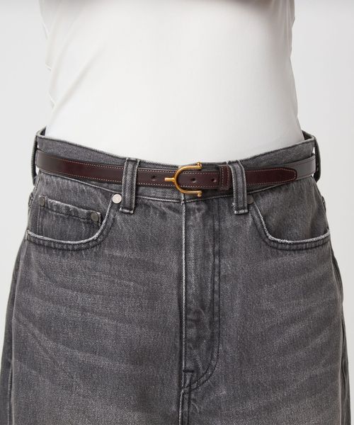 シンプルながらもTORY LEATHERらしい存在感のあるバックルが目をひくベルト。