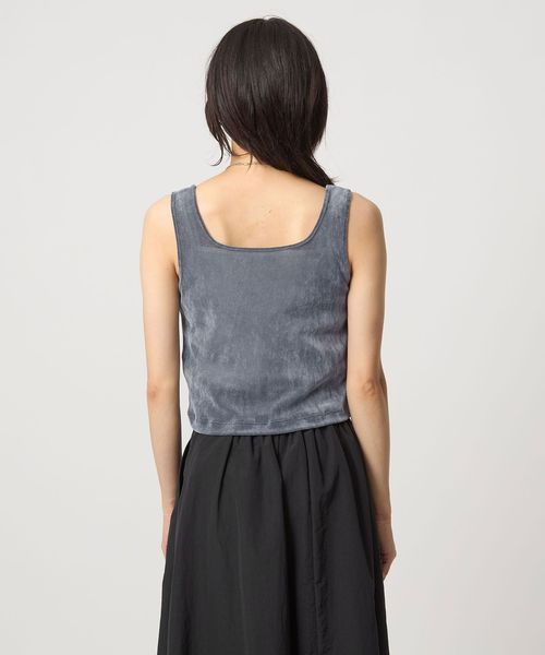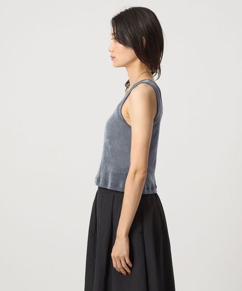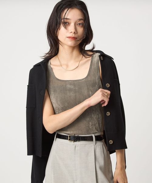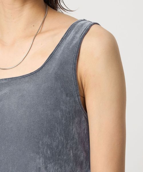 デコルテラインがきれいに見えるスクエアネックのタンクトップ。