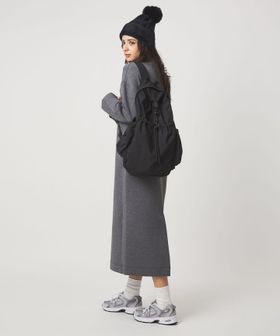 メタリックのアクセントが特徴の素材コンビがY2Kファッションの足元をレトロ&スポーティに彩ります。