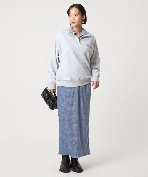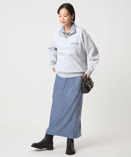 Iラインを活かしたロング丈トップスとのロング&リーンスタイルや、