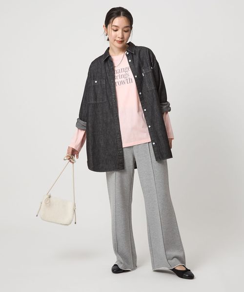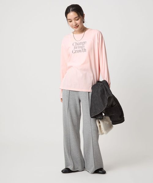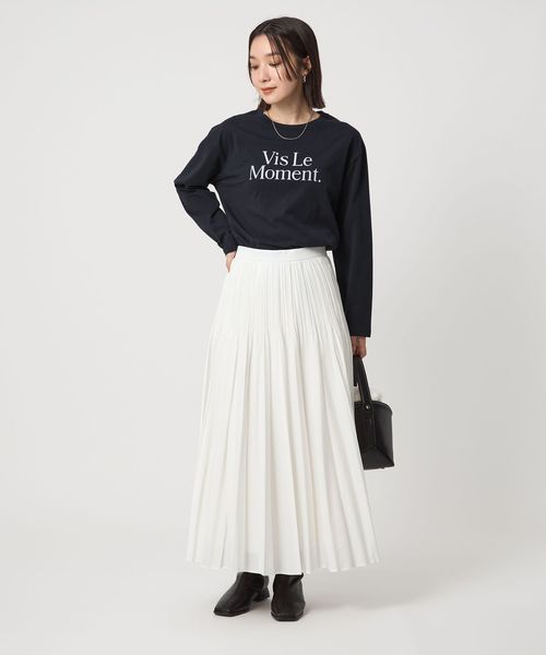上品な印象のロゴプリントなので、ジャケットやカーディガンと合わせてお仕事での着用もおすすめです。