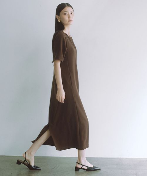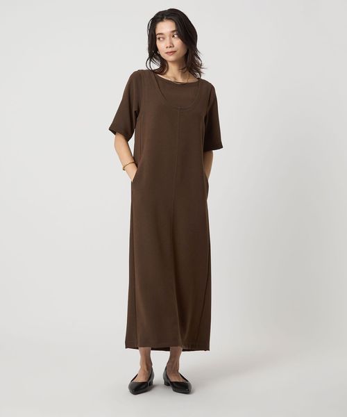 一枚での着用はもちろん、シャツやカーディガンを羽織るなど、幅広い着こなしを楽しめるワンピースです。