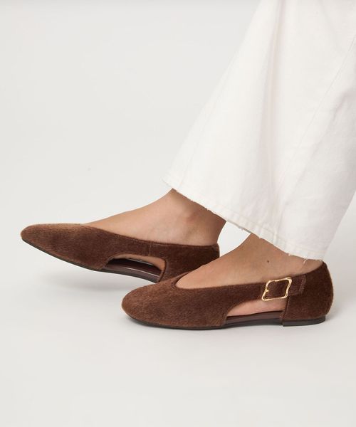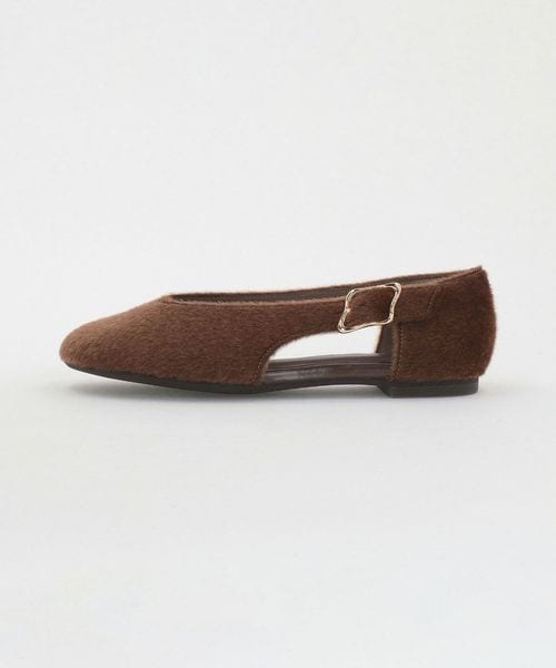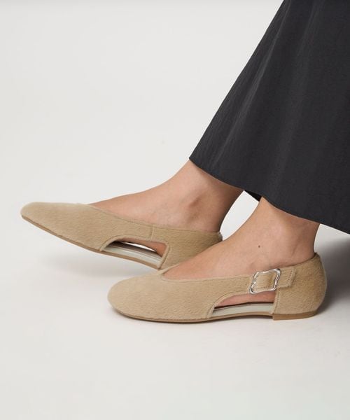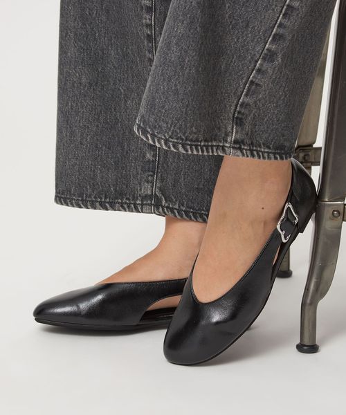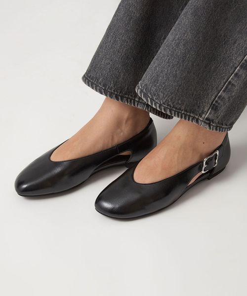モダンに仕上げたカットラインと、オリジナルで型を起こした不均衡なバックルがポイント。