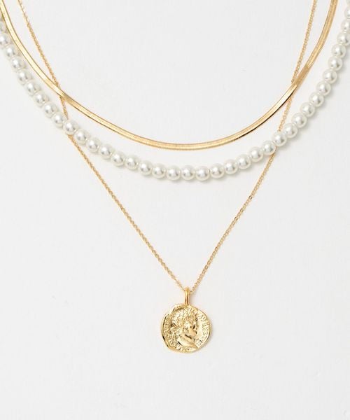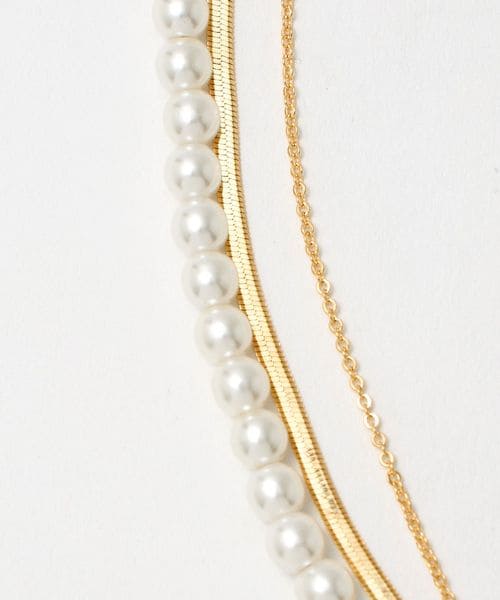 フェイクパール1連と、チェーン2連を分けることができ、スタイリングやシーンに合わせて使い分けが可能です。