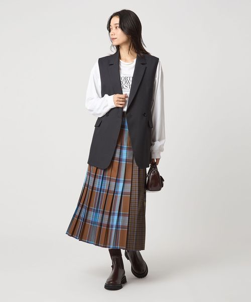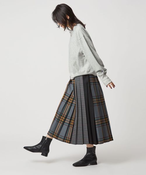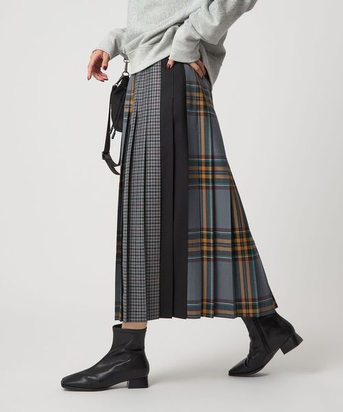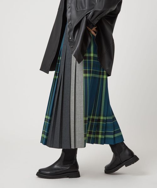 ロング丈、カラー、パターンも異なるさまざまなチェック生地を組み合わせ、トレンド感あふれるデザインにアップデートしました。