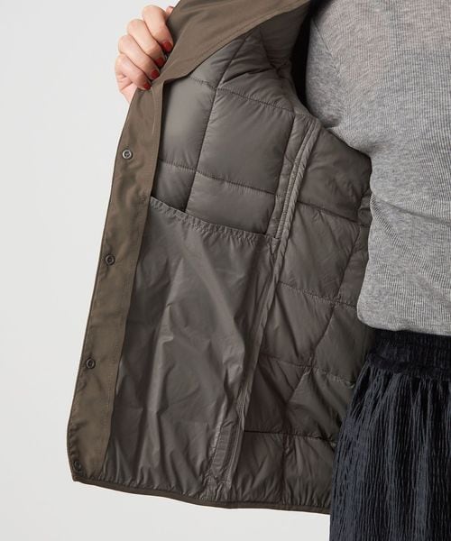 アウターとしても着ていただけるように、表の生地を少しハリのあるものに変更し、ボタンもボディに近い色に変更しています。