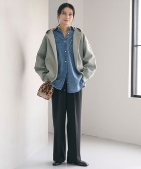 同素材のスカートと合わせたセットアップスタイルもおすすめです。