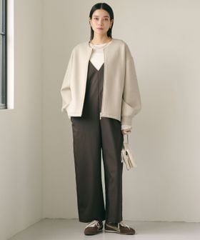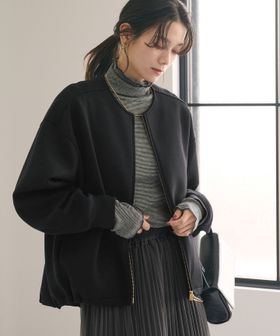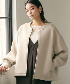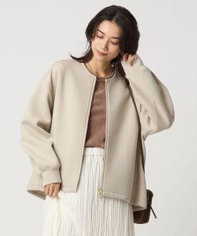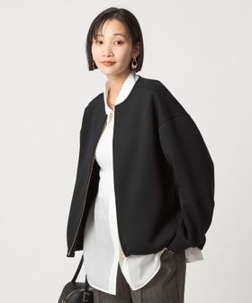 ハリのあるダンボールニットのノーカラージップブルゾン。