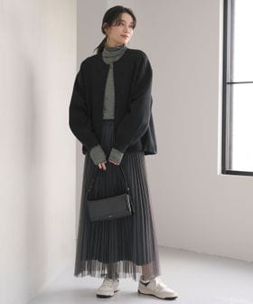 同素材のスカートと合わせたセットアップスタイルもおすすめです。