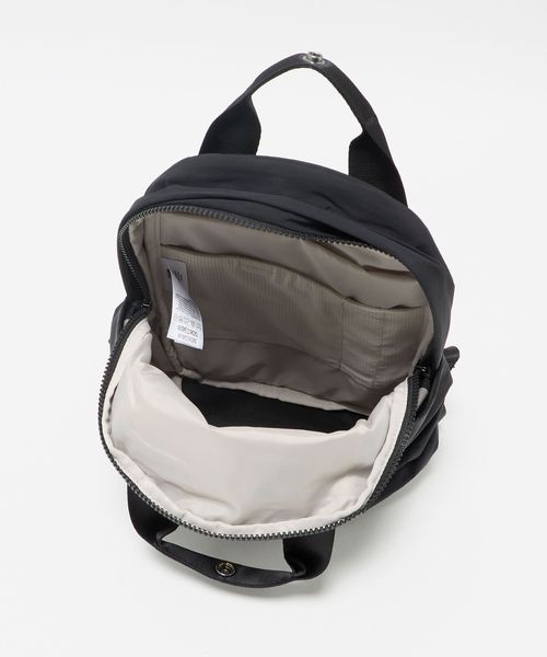 柔らかいタッチ感をもつ160デニールのナイロンを使用した、シンプルでクリーンな印象の女性用ミニデイパック(7L)。