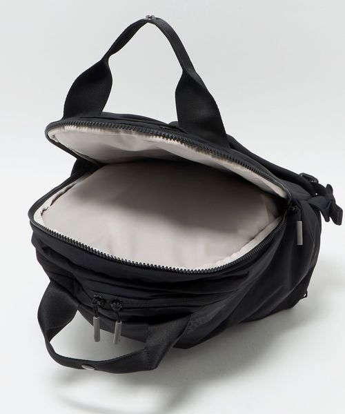 柔らかいタッチ感をもつ160デニールのナイロンを使用した、シンプルでクリーンな印象の女性用小型デイパック(18L)。
