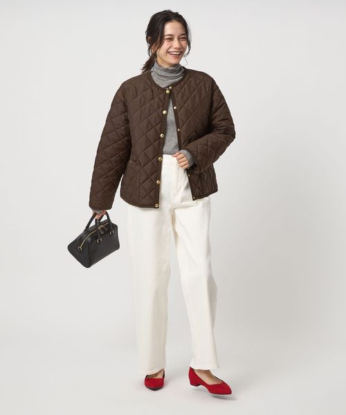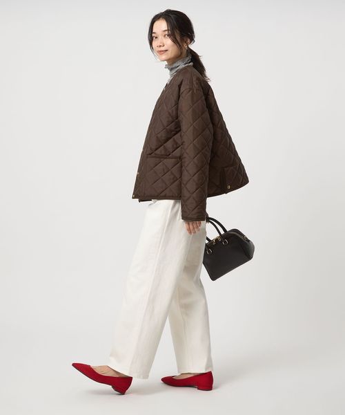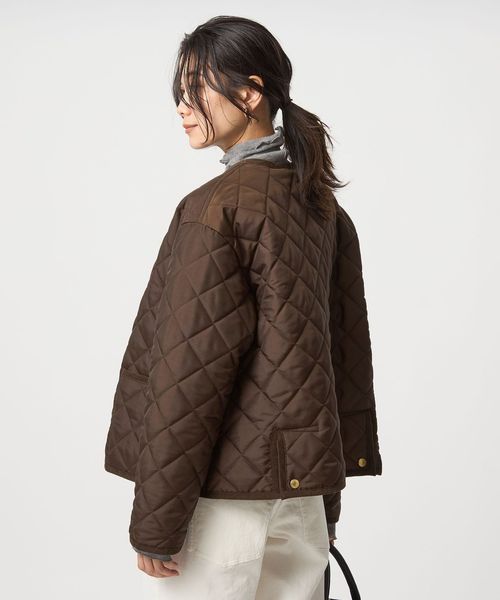 ノーカラーキルティングジャケット「アークリーAラインショート」をベースにモデル別注。