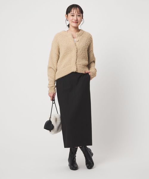 ふわふわとした起毛感とボディに合わせて染めたボタンがクラシカルな印象のカーディガンです。