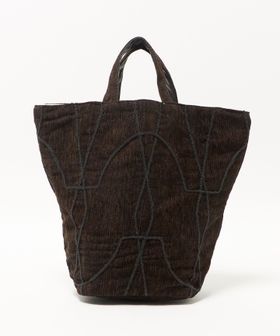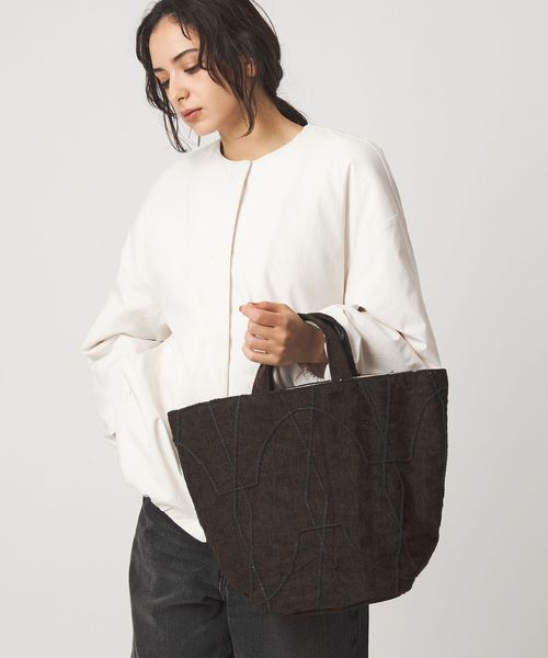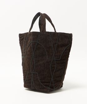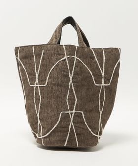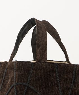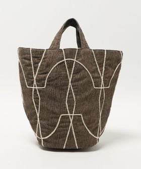 表面感のある素材をベースに、立体的な刺繍で模様を描いたデザインが特徴のバッグ。