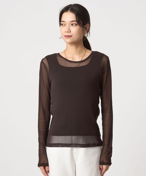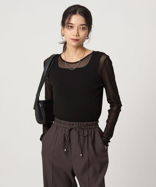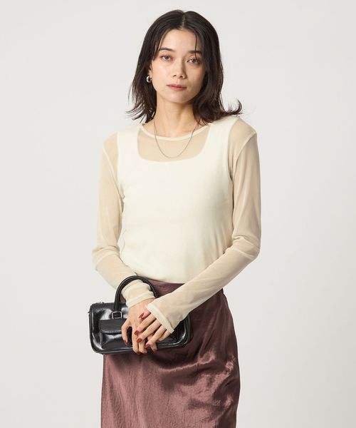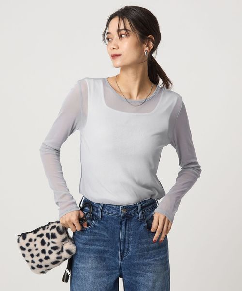 さまざまなレイヤードスタイルを楽しめる、チュール素材のロンT。