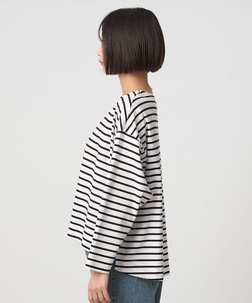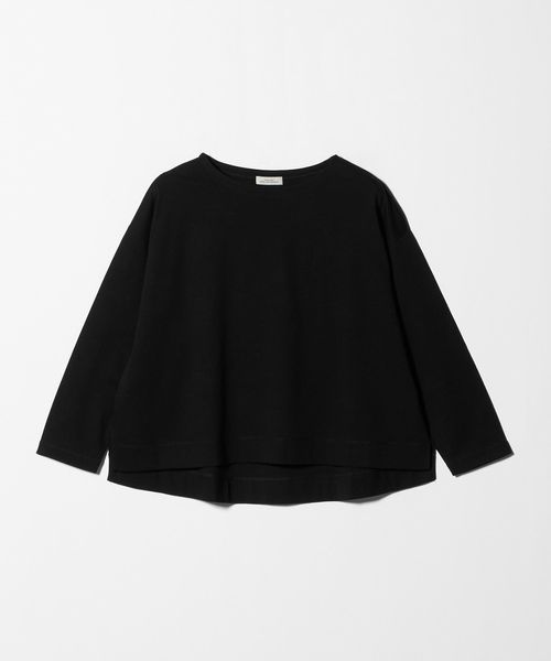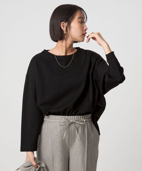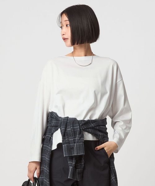 前後差のある裾のデザインと、ドロップショルダーでこなれ感を演出しました。