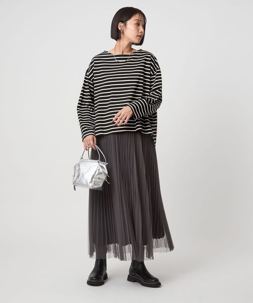 ワイドパンツやデニム合わせはもちろん、タイトスカートを合わせて大人カジュアルなスタイリングもおすすめ◎