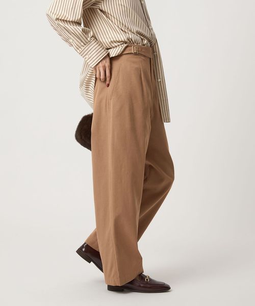 ベルトデザインが一枚でサマになるフォルムパンツ