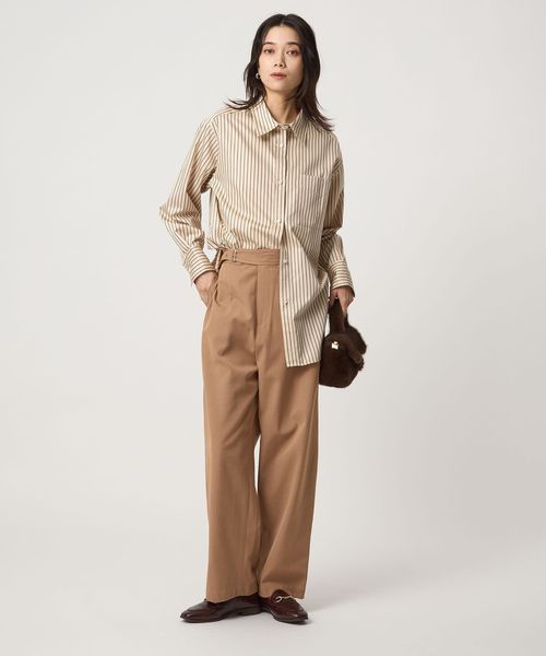 スタイリングにメリハリが出るベルトデザインがマニッシュな印象に。