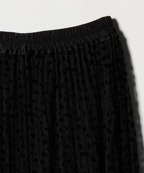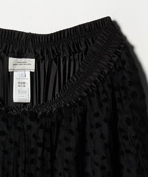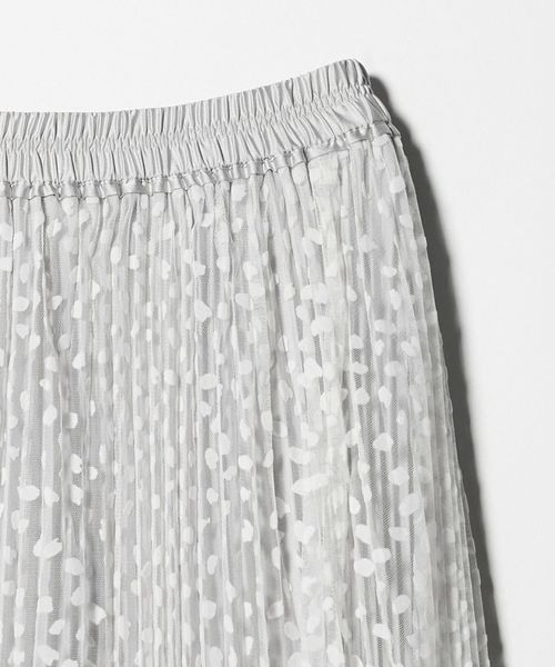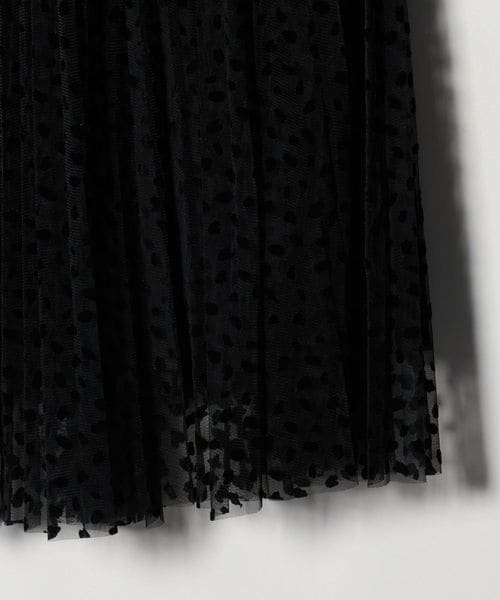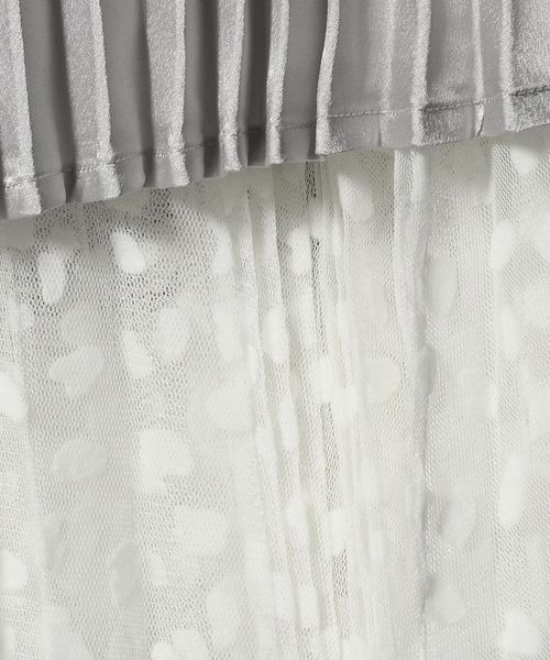 凹凸感のあるドット柄のメッシュの細かいチュール素材と、きれいめな印象のサテン素材。