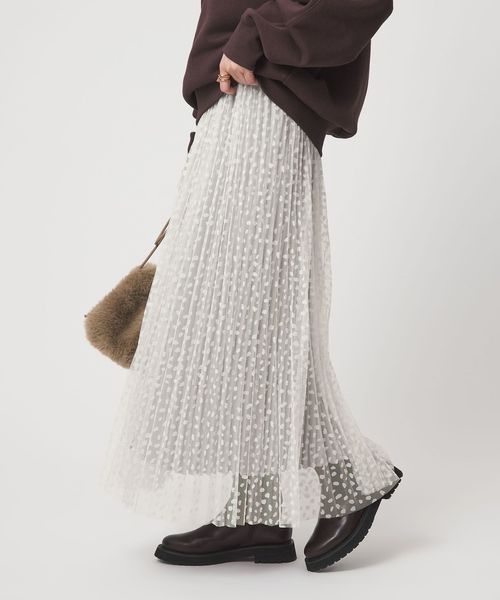 [size SHORT/TALLあり]2WAY チュール プリント プリーツ スカート