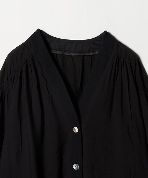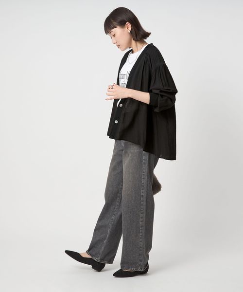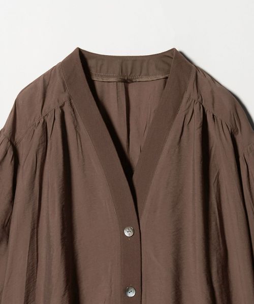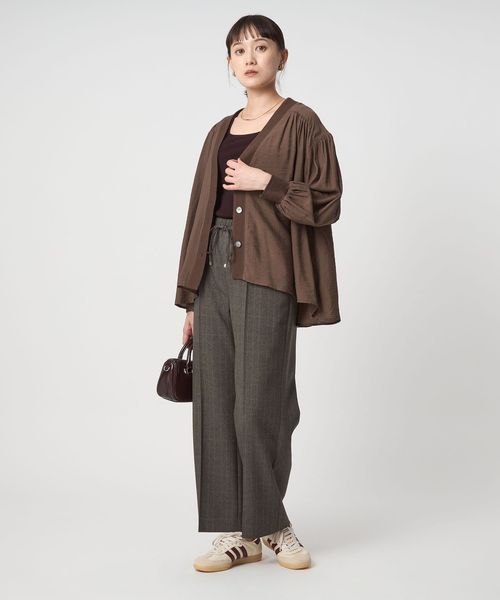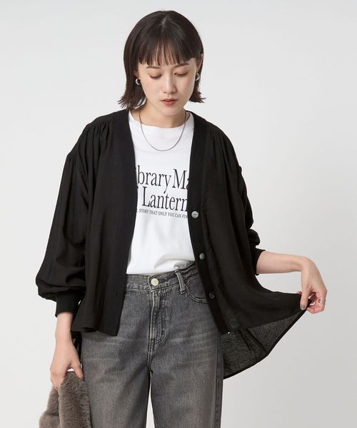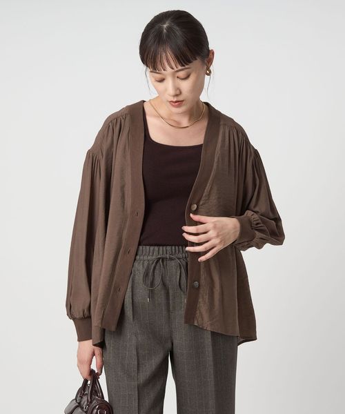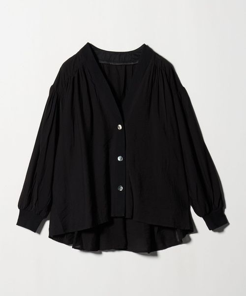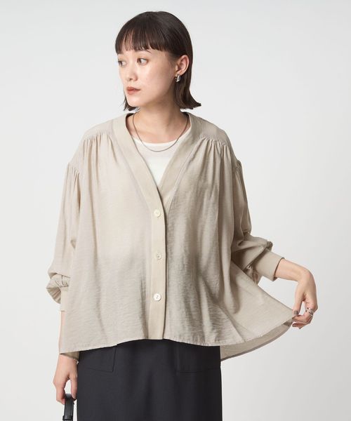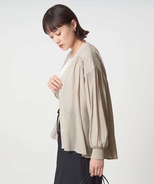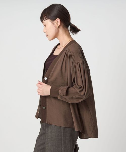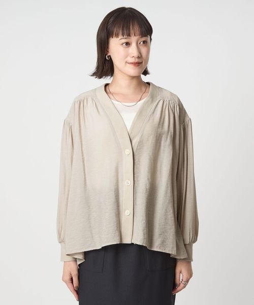 前を閉じてブラウスとして、開けてカーディガンとしても活躍する一着。