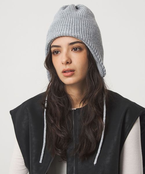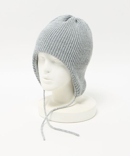 トレンド感のある耳当てフラップ付きのニットビーニー。