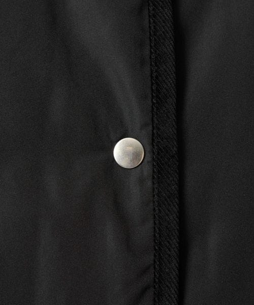 襟ぐりから前立て部分はコーデュロイ生地でトリミングすることでポイントをプラス。