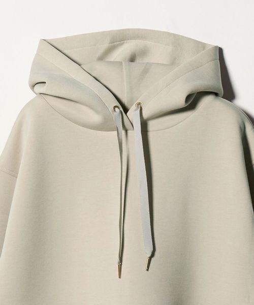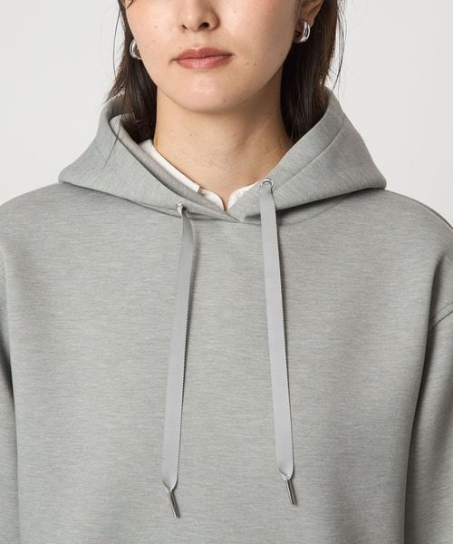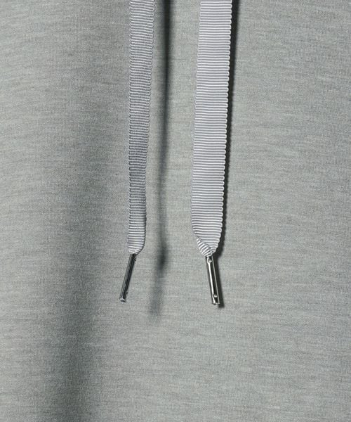 フードのフロント部分の紐の先端には、きらっと光る金具がさりげないアクセントになっています。