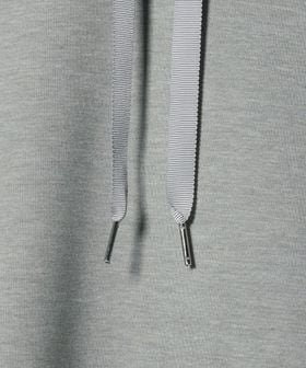 フードのフロント部分の紐の先端には、きらっと光る金具がさりげないアクセントになっています。