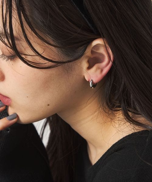 キャッチが無く、ピアスホールに通してカチッと閉じるワンタッチのデザイン。