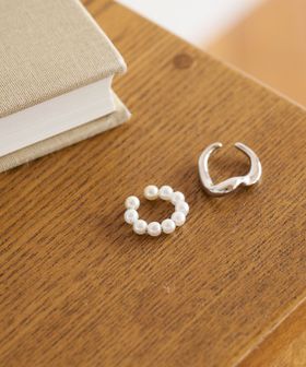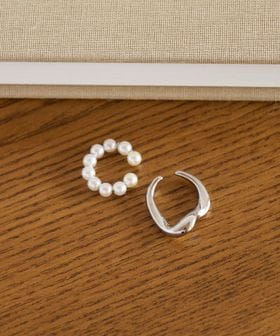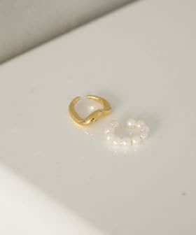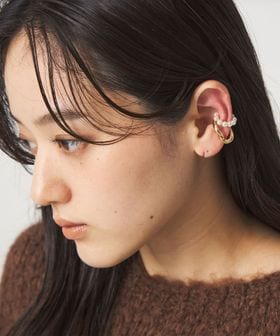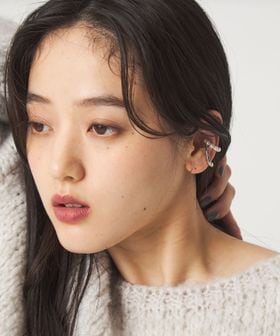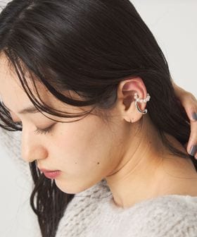 異なる2本のコンビで、上品さとモード感を両立したイヤカフ。