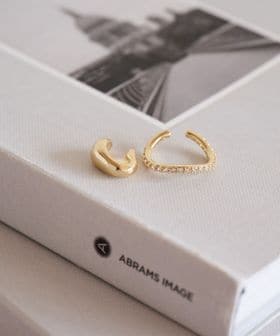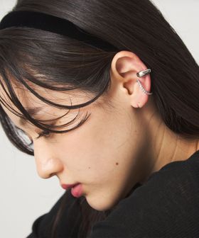 華奢なキュービックジルコニアのタイプに対して、少しボリュームを持たせたややモード感のあるデザインとあえて組み合わせることで、ほんのり甘辛に。