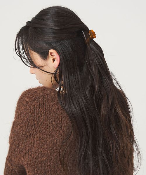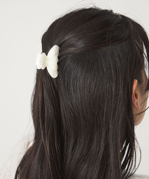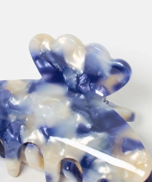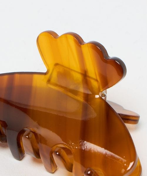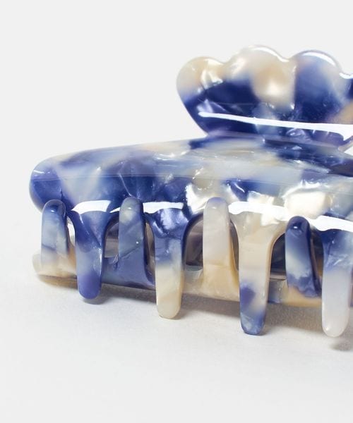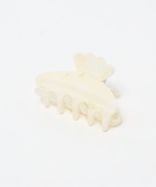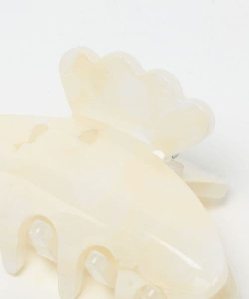 持ち手に特徴のあるスカラップデザインのついた大きめのヘアクリップ。