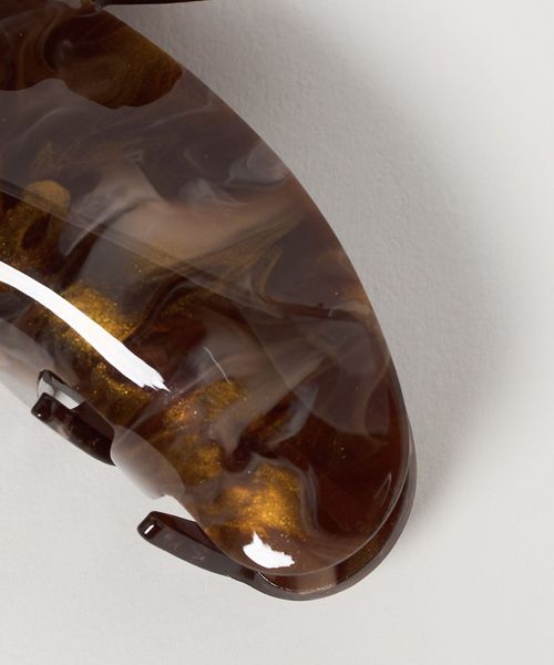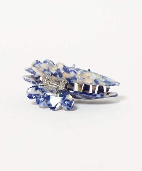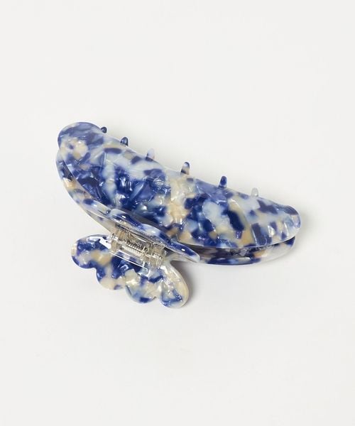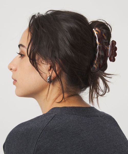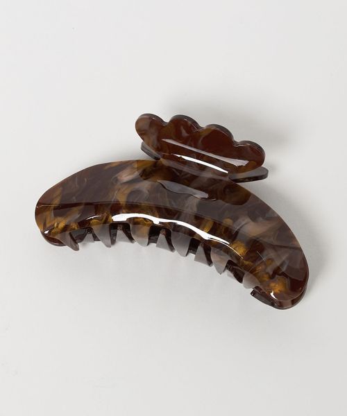 持ち手に特徴のあるスカラップデザインのついた大きめのヘアクリップ。