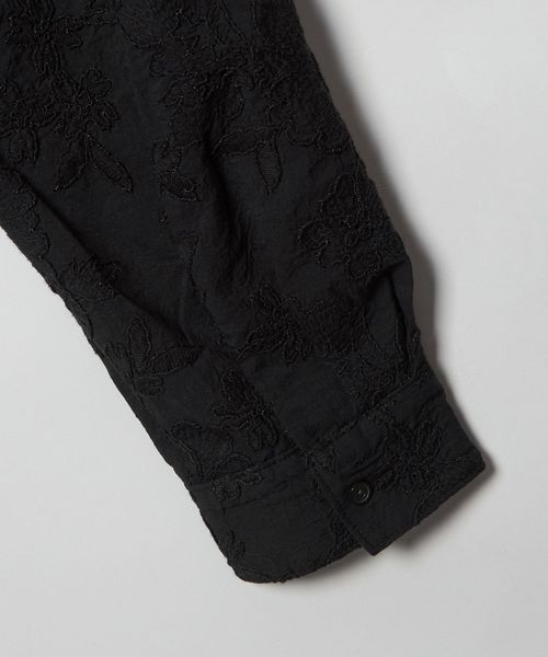 花モチーフを抽象的なアウトラインでコード刺繍した、凹凸感のある素材です。