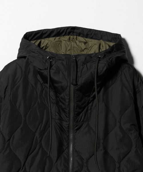 ヘチマキルトのダウンステッチが、クラシカルでミリタリー感を演出。フード周りは首元までしっかり暖めてくれます。左右の腰ポケットは、ハンドウォーマーポケットにもなる2WAY仕様。両脇のスリットは、可動域が増え動きやすさをサポートし、ボトムのポケットに手も入れやすく、重ね着を楽しんでいただける仕様としました。