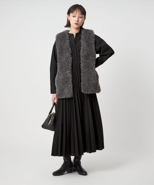 品よく決まる、ワッシャープリーツワンピース。