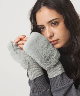 毎年ご好評頂いている、ファーライク素材とニットを組み合わせたグローブ。
