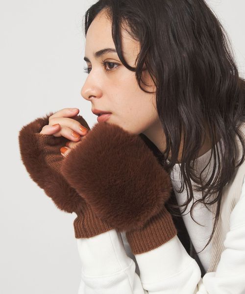 毎年ご好評頂いている、ファーライク素材とニットを組み合わせたグローブ。